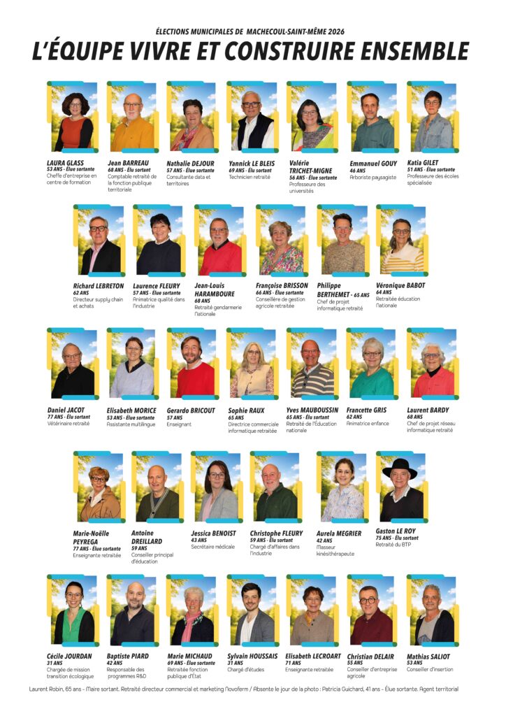 Vivre et construire ensemble est issu de la liste de la majorité sortante et complétée avec de nouveaux candidats. Pour les prochaines élections municipales des 15 et 22 mars 2026, Vivre et construire ensemble, avec Laurent Robin comme tête de liste, est une équipe engagée et à l’écoute, pour une commune vivante, ambitieuse et durable.